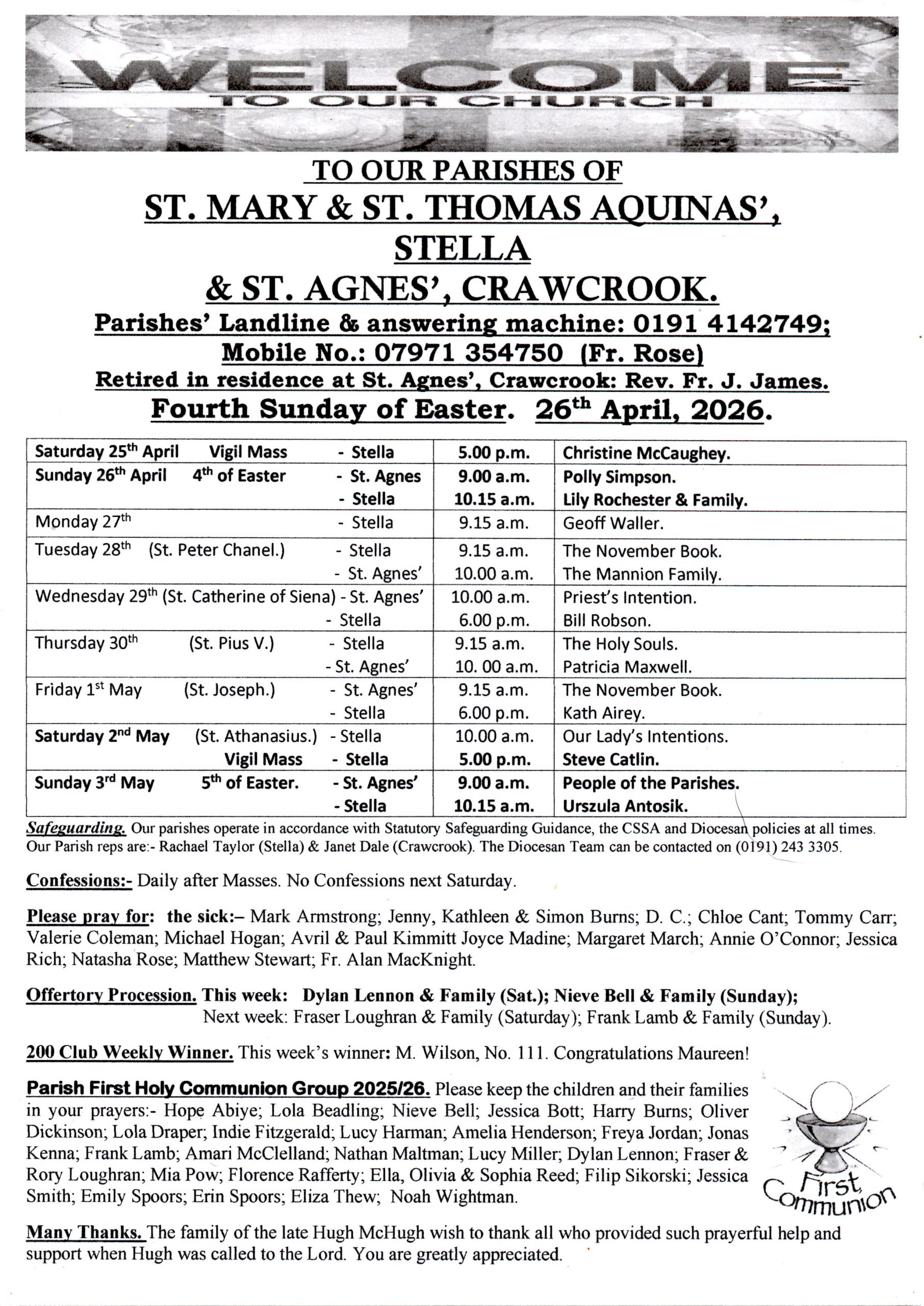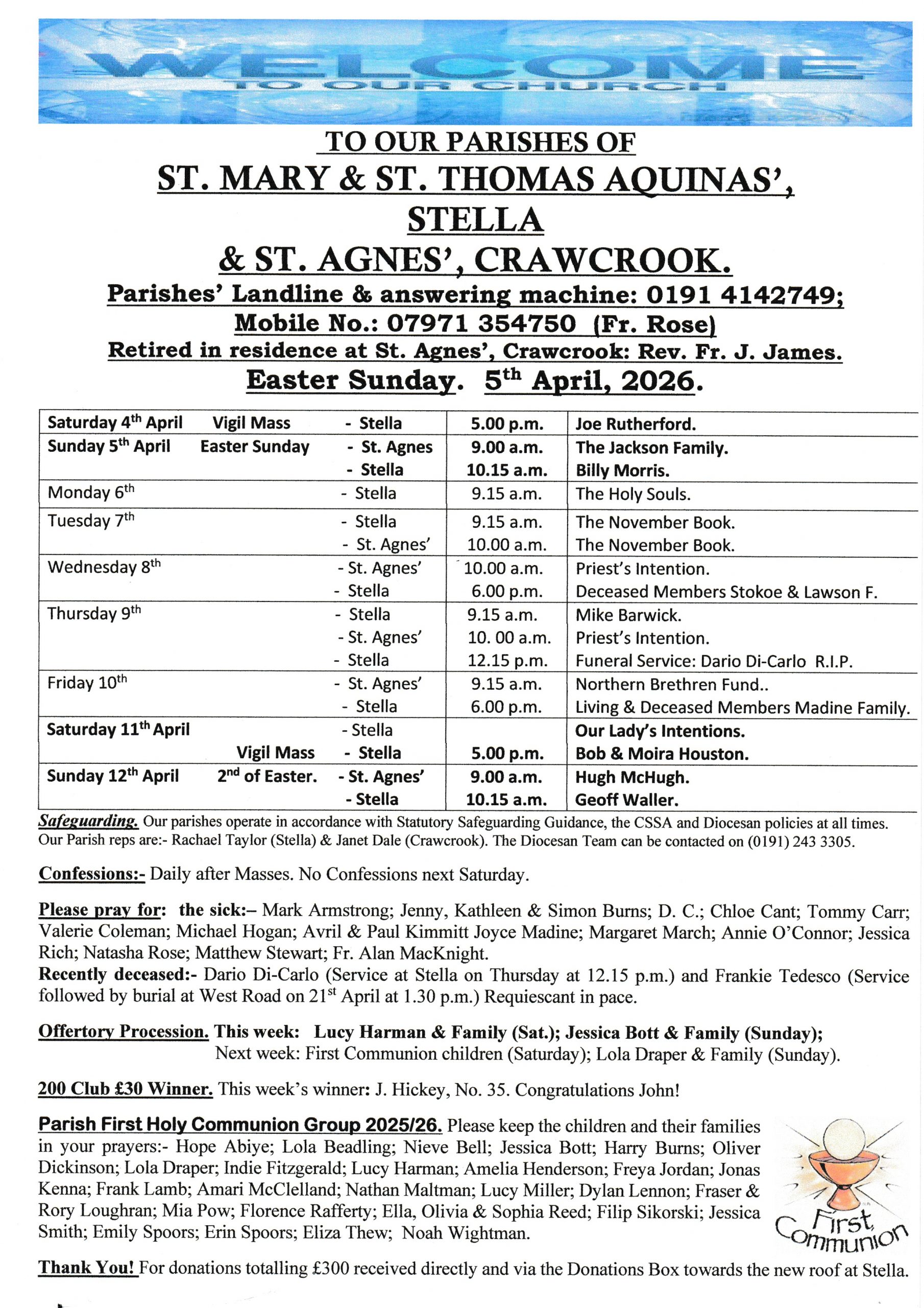 You can follow us on Facebook at Stella Church for news for St Mary & St Thomas Aquinas, Stella and St Agnes’, Crawcrook.You can also follow us on Instagram at stella_catholic_church_blaydon
