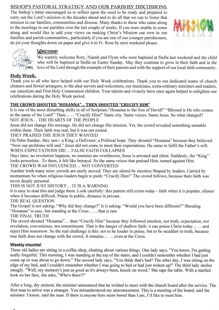 Stella: – Tuesday, 24th March at 6.00 p.m. Our Call to Mission.