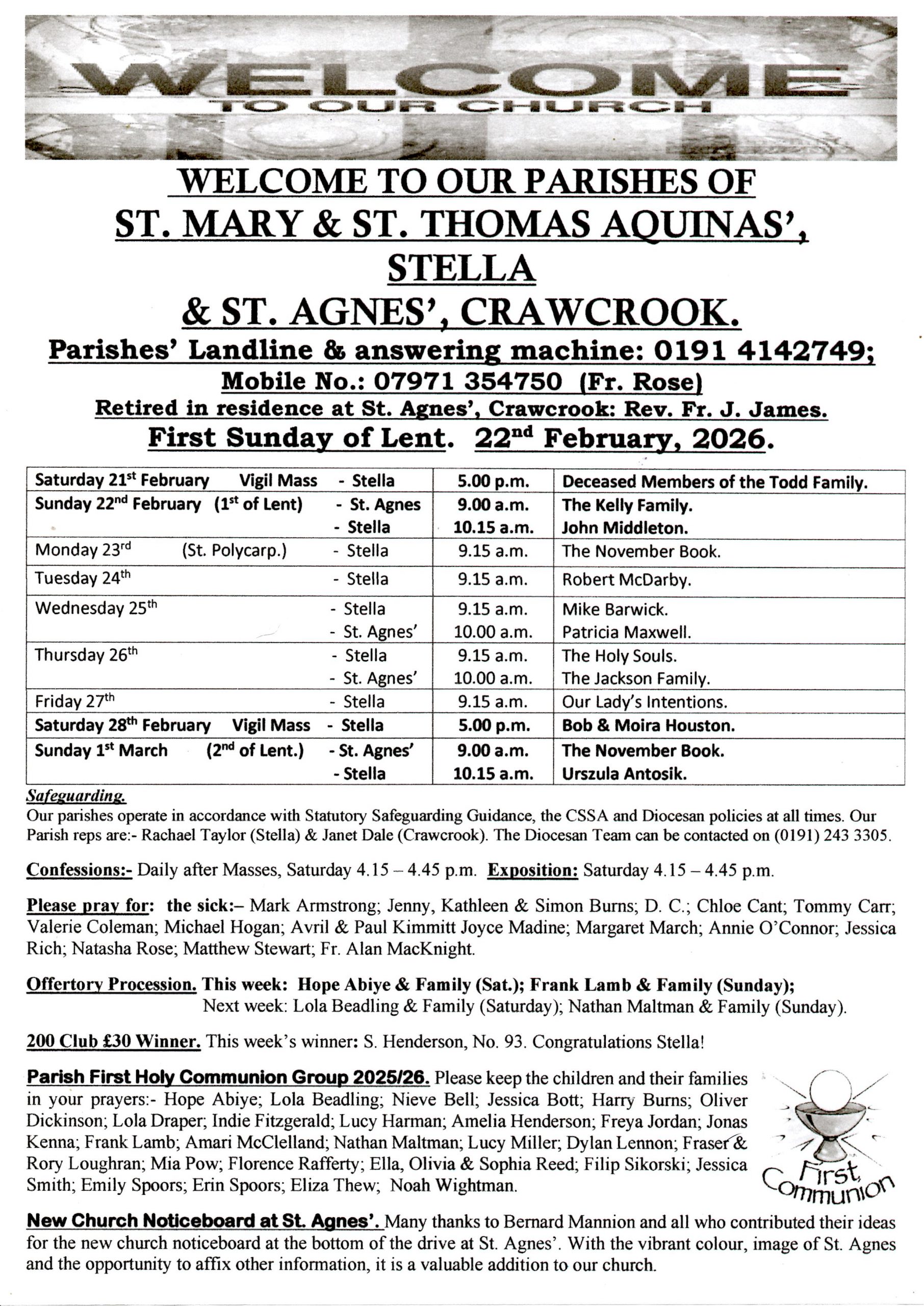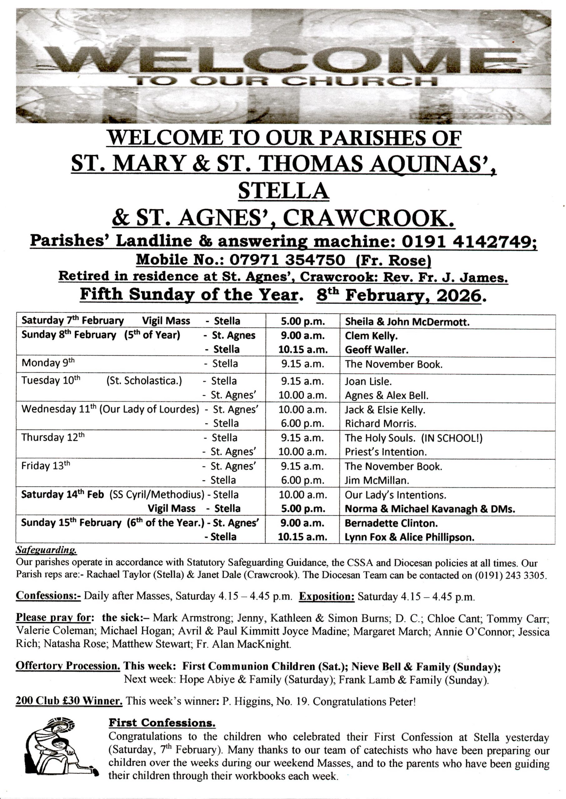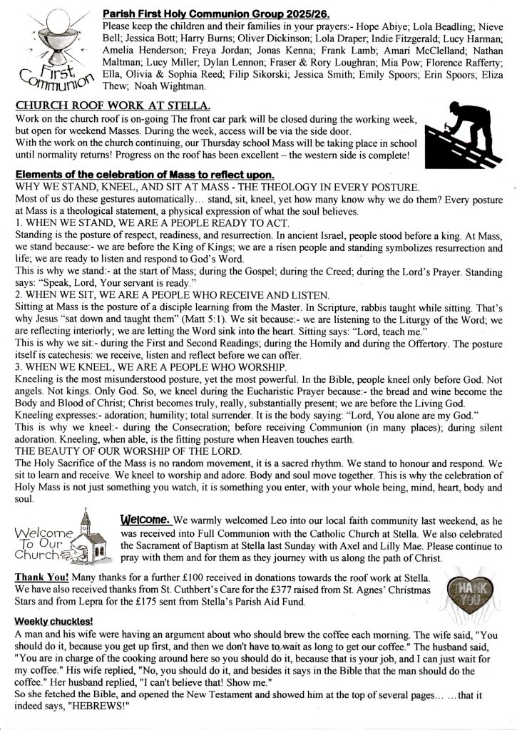 You can follow us on Facebook at Stella Church for news for St Mary & St Thomas Aquinas, Stella and St Agnes’, Crawcrook.