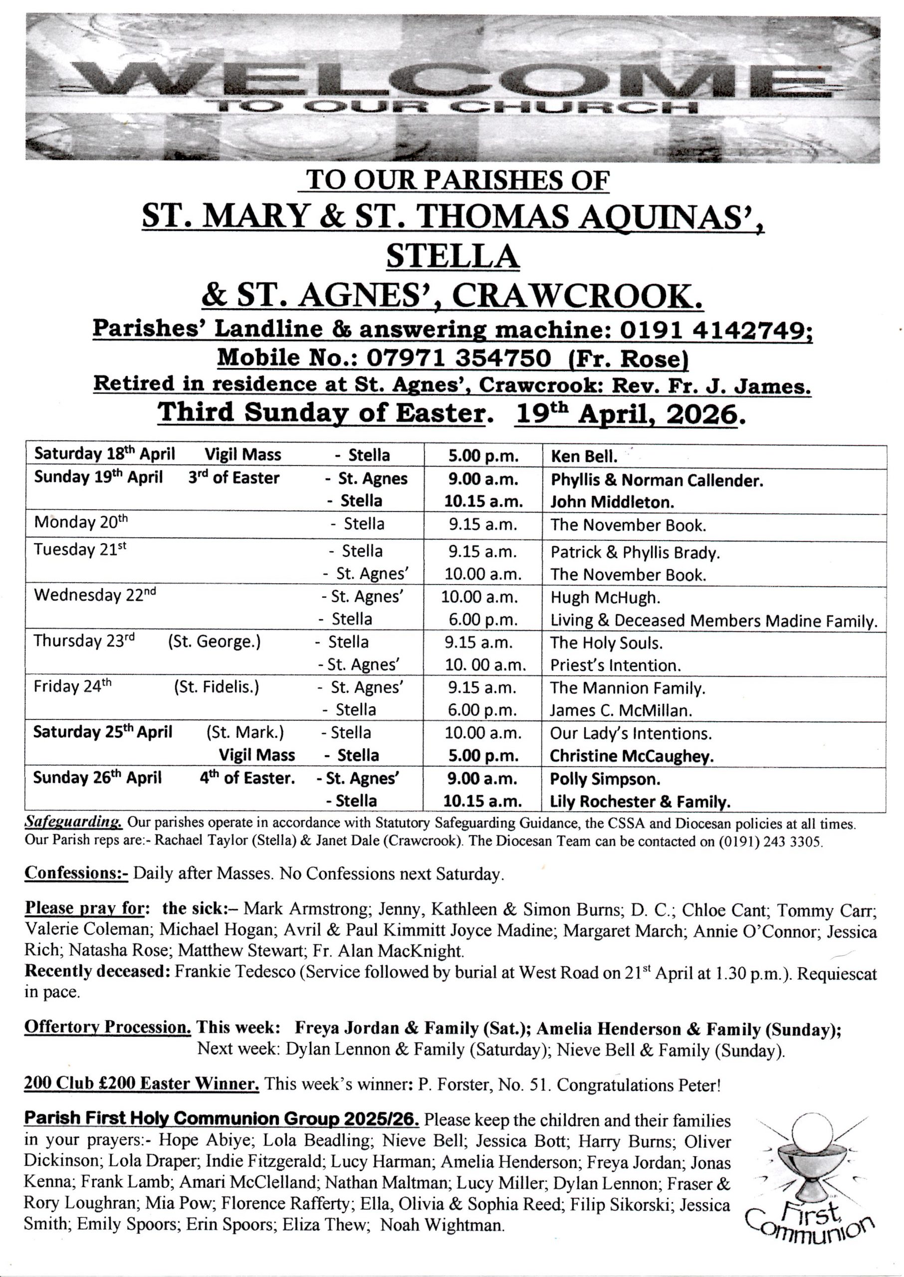 Bulletin for 3rd Sunday of Easter 19th April 2026